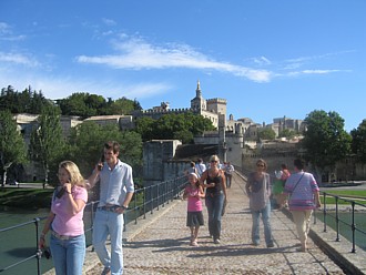 Fra den gamle bybroen som stopper midt i elven. Pavepalasset i bakgrunnen.