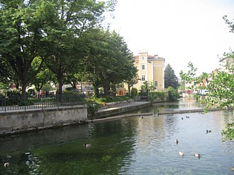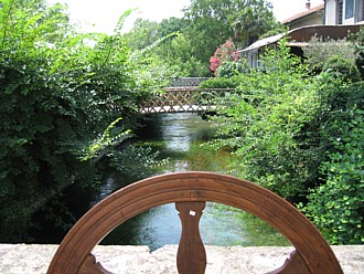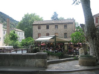 En liten koselig landsby som passer utmerket for lunsj langs elven som kommer fra kilden som stedet er så kjent for.